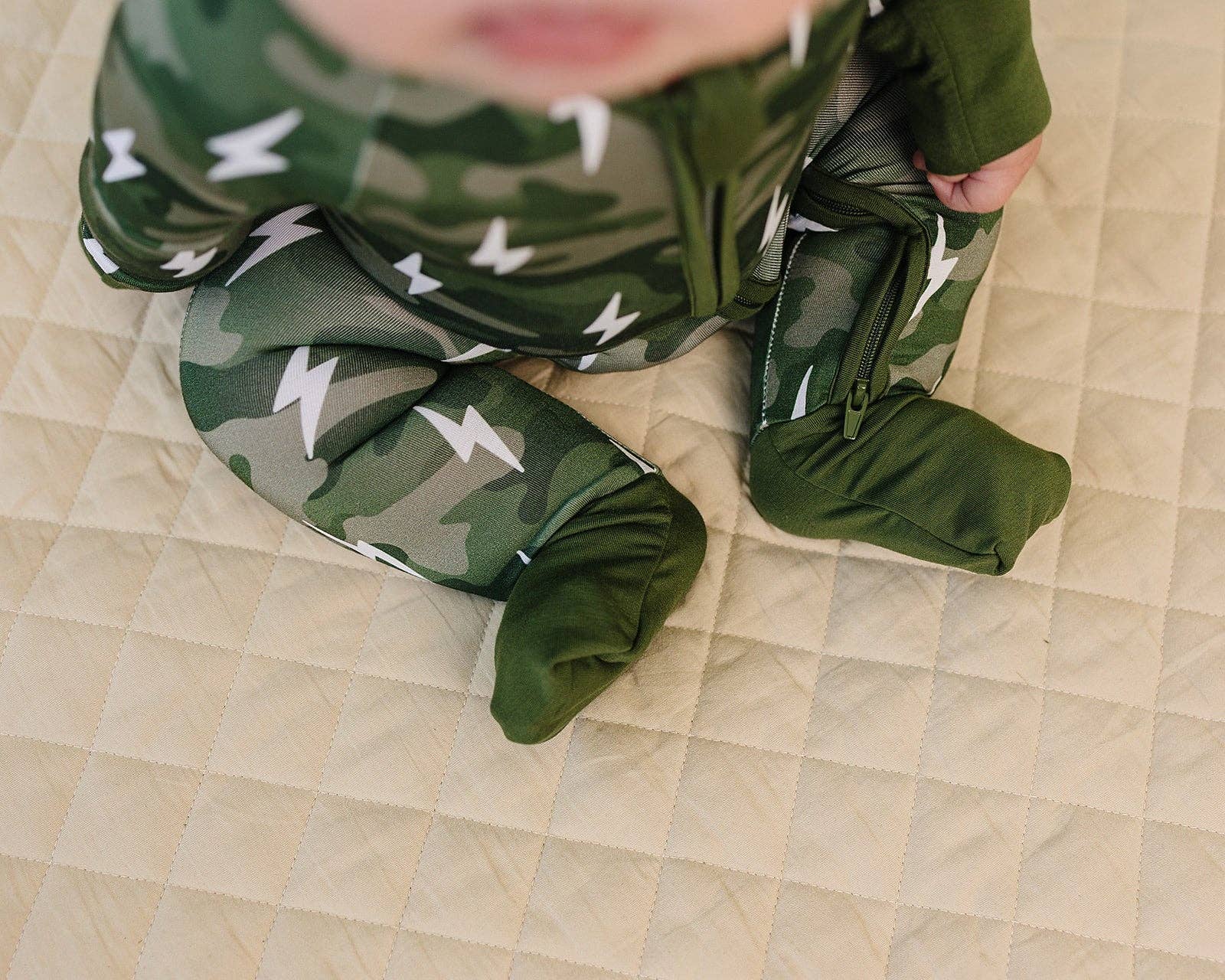 The Bamboo Zip Romper | Green Camo Bolts is made for little adventurers with big energy. With earthy green camo tones and crisp white lightning bolts, this bamboo baby romper brings a fun, adventurous touch to everyday comfort. Crafted from buttery soft, breathable bamboo, it keeps your little one cozy, cool, and ready to explore.