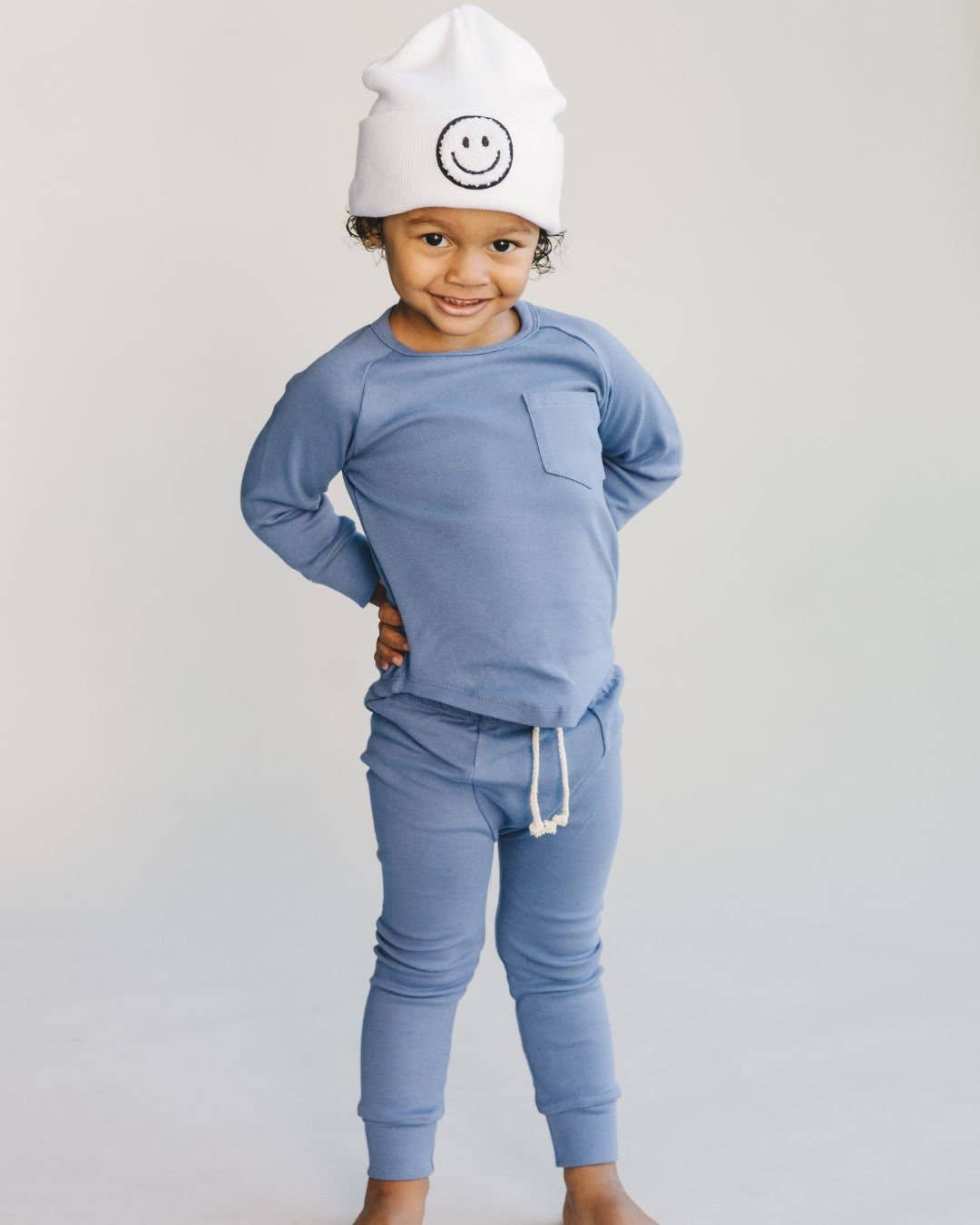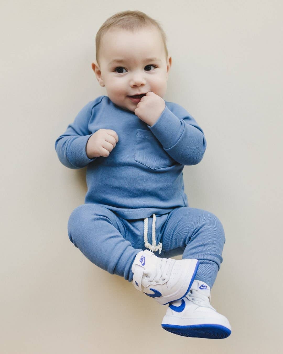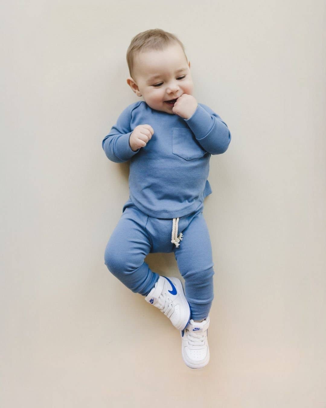 This two-piece set is made of oh-so-soft cotton and perfect for daily lounging! Stylish enough for a day out, cozy and comfortable for play. Gender neutral, this sweet and simple design will be your little one's favorite must-have! 95% cotton 5% spandex. wash in cold water, tumble dry low.