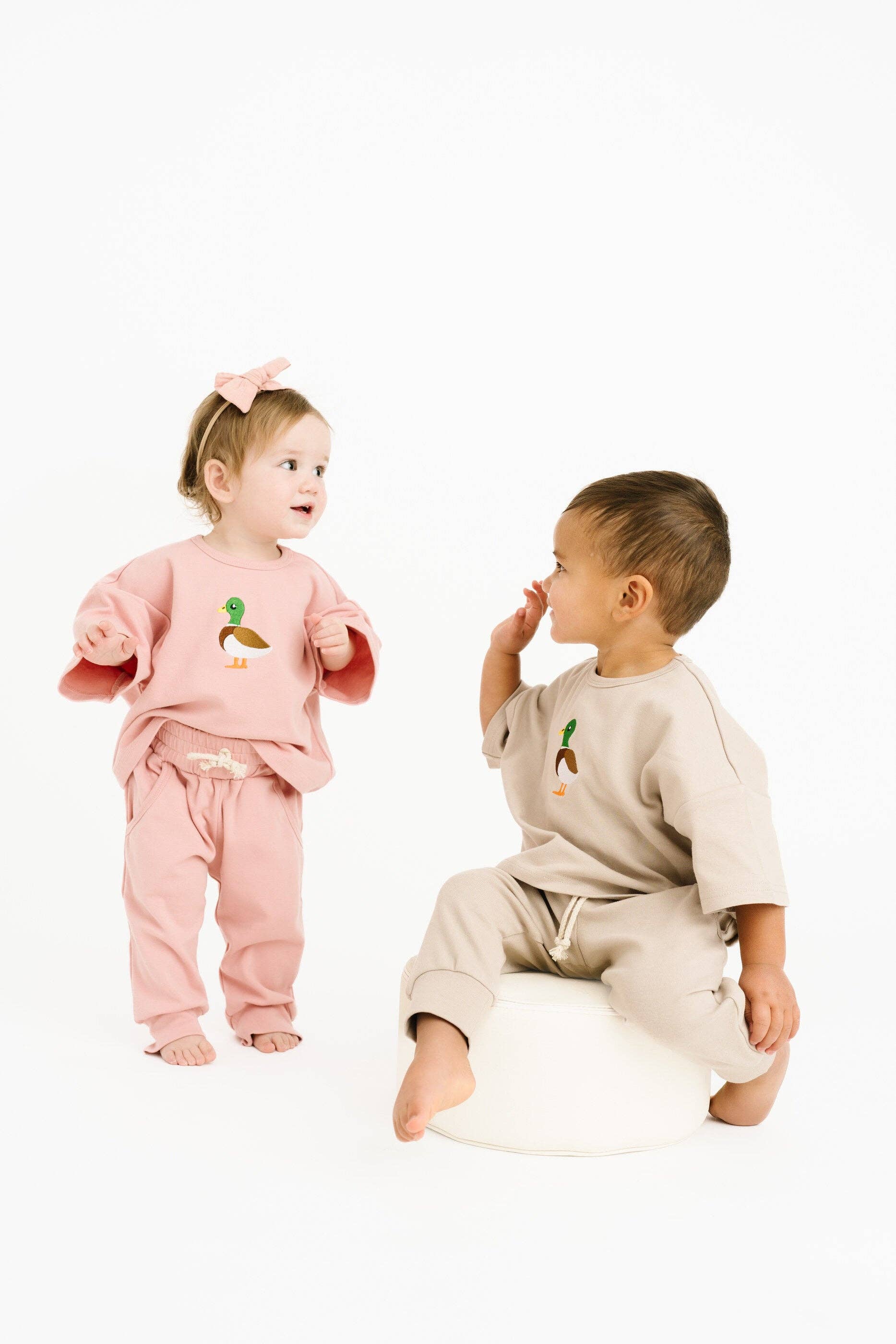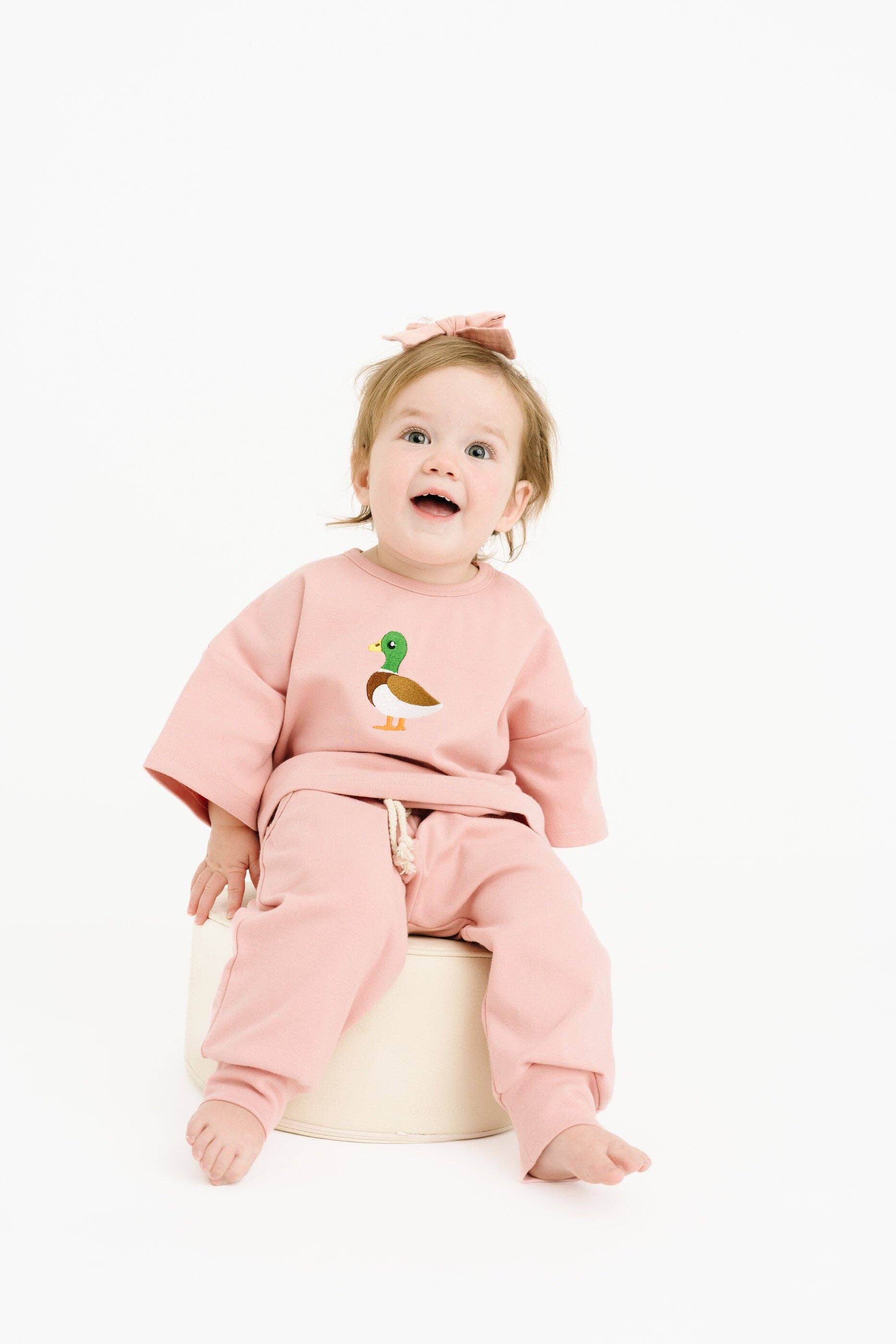 Pink Duck Embroidered Slouchy Set